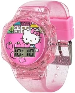 Accutime Часы с LED-дисплеем в пастельно-розовом цвете с блестками и изображением Hello Kitty