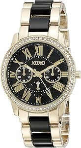 Accutime Золотистые женские наручные часы на браслете с черным циферблатом, украшенные стразами, с аналоговым механизмом