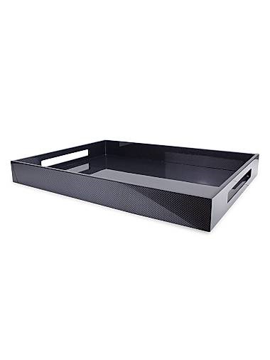 Этот прямоугольный поднос с ручками имеет 20 слоев высокоглянцевого лака, каждый из которых вручную полируется. Нижняя часть подноса обтянута мягким черным бархатом с тисненным логотипом.