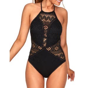 Adore Me Купальник-ромпер Margaret с высоким воротником, открытой спиной и регулируемыми бретелями.