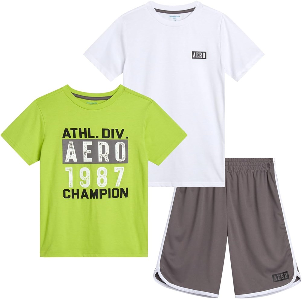 Aeropostale Набор активной одежды для мальчиков - 3 предмета: футболки с короткими рукавами и шорты-дельфины (размер 8-12)