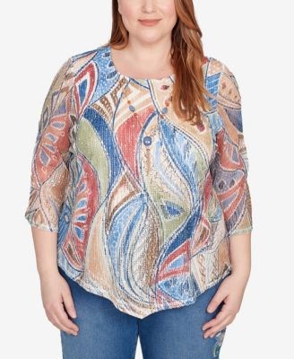 Alfred Dunner Футболка большого размера с текстурным декором и листьями El Paso, от 1X