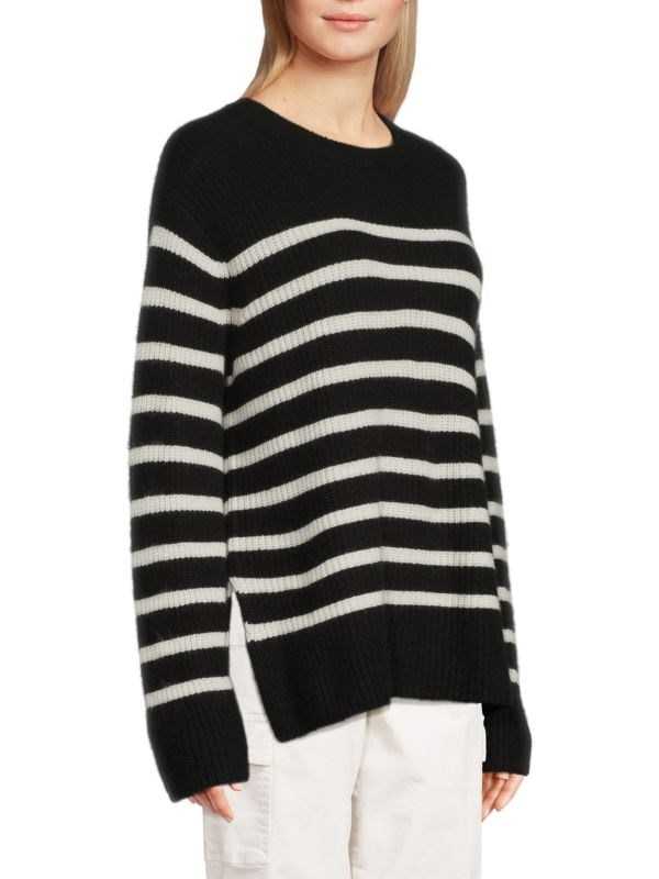 Alice + Olivia Свитер Harold в полоску из шерсти и кашемира с круглым вырезом и длинными рукавами, 70% шерсти, 30% кашемира