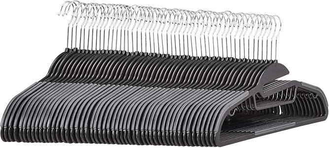 Amazon Basics Пластиковые вешалки с горизонтальной перекладиной, 50 штук, серые, противоскользящие, выдерживают до 4,5 кг