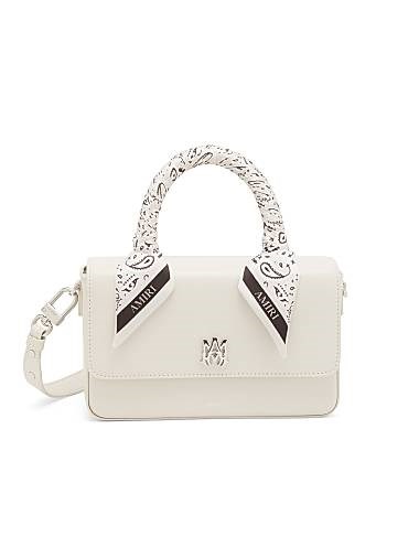 Amiri Итальянская кожаная микросумка с логотипом ',MA', и бантиком, размером 23 см x 12,7 см x 5 см