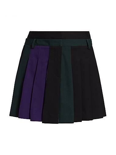 Мини-юбка Savanna от anOnlyChild выполнена в плиссированной A-образной форме из шерсти трёх оттенков. Двойной пояс с петлями для ремня завершает образ.