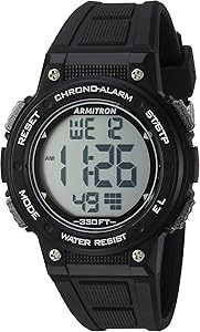 Armitron Женские цифровые часы-хронограф с черным ремешком из смолы, корпус 34 мм, водонепроницаемые до 100 м