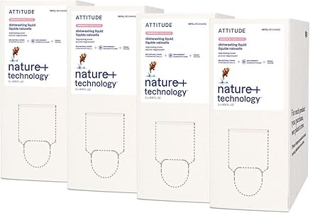 Attitude Веганская жидкость для мытья посуды на растительной основе, проверенная EWG, 4 упаковки по 2 литра