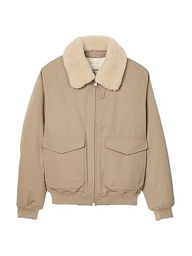 Хлопковая куртка-авиатор с съёмным меховым воротником, длинными рукавами и застёжкой на молнии с верхней планкой.