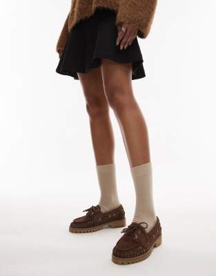 Балетки Bronx Sie-nna из шоколадной замши с перфорацией и низким каблуком.