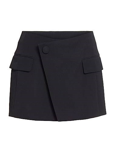 Balmain's miniskirt showcases an asymmetric waist with a single button closure.