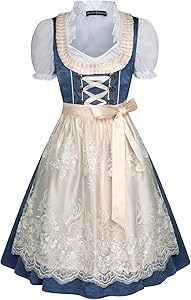 Классический дизайн: Традиционный баварский костюм с карманами, квадратным вырезом, декоративными пуговицами и элегантным фартуком с кружевом. Скрытая молния облегчает одевание.