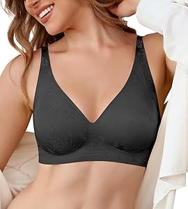 Красивый жаккардовый узор: Бра без проводов с V-образным вырезом сочетает в себе красивый дизайн и отличный комфорт. На внешней стороне — изысканный жаккардовый узор, подчеркивающий уникальный стиль женщины. Встроенная мягкая поддержка из силиконовой ленты аккуратно поддерживает грудь и придаёт ей естественную полноту.