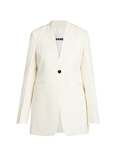 Изготовленный из компактной итальянской шерсти, пиджак Jil Sander имеет безворотный дизайн и застежку на одну пуговицу.