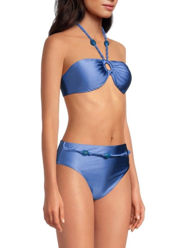 Элегантный бикини-бандо с блестящей стрейчевой тканью, который станет идеальным выбором для пляжа.