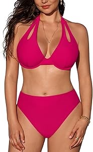 Дизайн: Этот топ с V-образным вырезом и завязками на спине идеально подходит для женщин с большой грудью. Высокие плавательные шорты с стандартным вырезом и умеренным покрытием делают его классическим выбором для отдыха у воды.