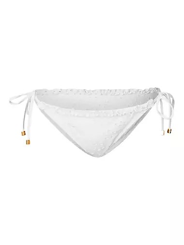 Нижняя часть бикини от бренда Shoshanna украшена фирменными золотистыми бусинами, имеет треугольный вырез и боковые завязки.