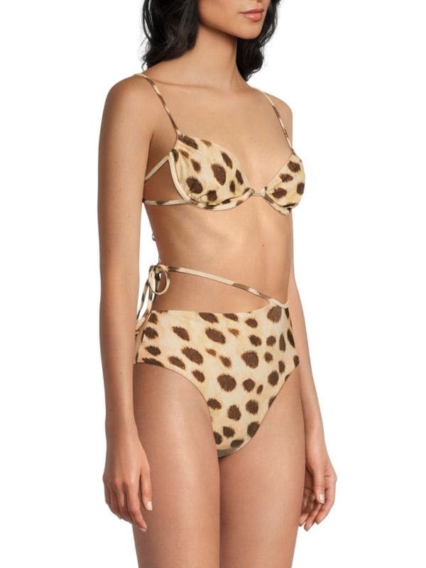 Бикини-топ с рюшами от WeWoreWhat с подкладкой и регулируемыми бретелями, выполненный из ткани с животным принтом