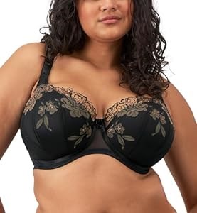 Бюстгальтер Elomi Teagan с подкладкой, половинными чашками и косточками, размер 32H, черный/миндальный
