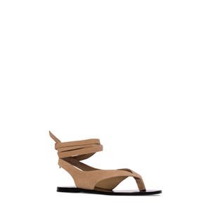 Сандалии с центральной перегородкой для пальцев и завязывающимся ремешком вокруг щиколотки обеспечивают надежную и стильную посадку.