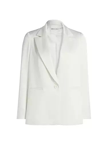 Этот блейзер Denny от Alice + Olivia имеет вырез с отложными лацканами и длинные рукава с пуговицами.