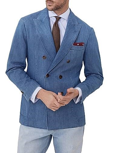 Блейзер из состаренного денима от Brunello Cucinelli с деконструкцией, шестью пуговицами и карманами, капроновая подкладка, Италия