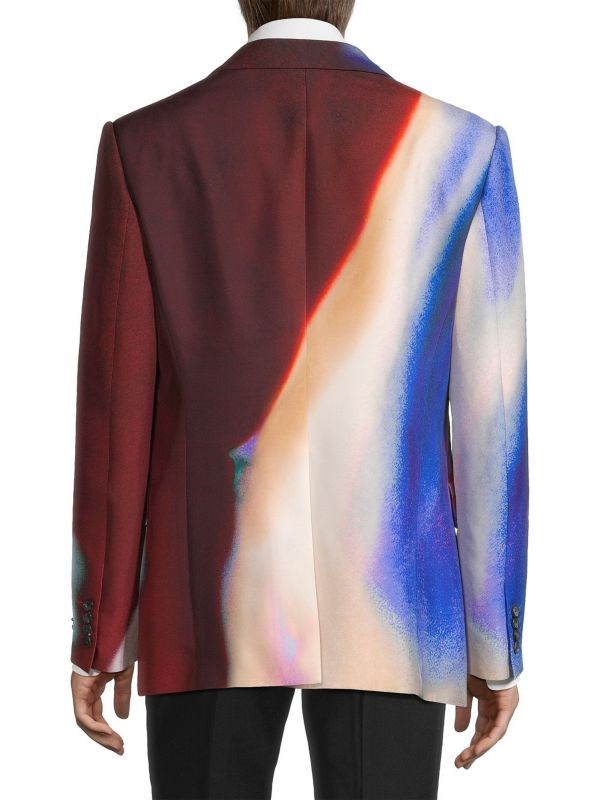 - Приталенный силуэт с пиковыми лацканами.