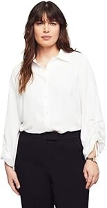 Блуза большого размера Anne Klein с присборенными рукавами, 100% полиэстер, застежка на пуговицах