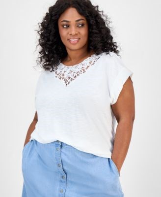 Блузка большого размера с кружевной отделкой и рукавами долман от Jones New York, 61% полиэстер