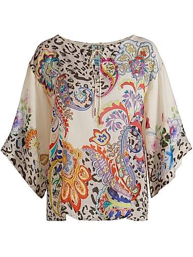 Яркая блуза Milo от Johnny Was украшена эффектным узором Пейсли и имеет стильную горловину.