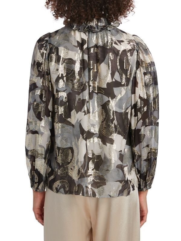 Блузка Boden от Kobi Halperin выполнена из принтованного шелкового микса с металлическим оттенком.