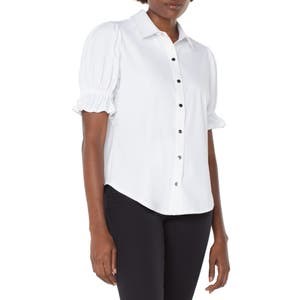 Блузка Liverpool Los Angeles с пуф-рукавами из гладкого трикотажа с застежкой на кнопках