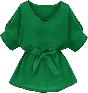 Блузка Milumia с короткими рукавами и V-образным вырезом, свободного кроя, 100% полиэстер, размеры S-XL