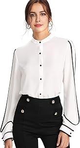 Блузка Milumia с воротником и длинными рукавами для работы, 95% полиэстер, повседневный стиль.