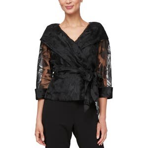 Блузка с цветочным принтом и поясом на завязках от Alex Evenings, полупрозрачные рукава три четверти