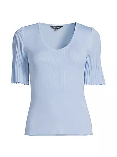 Блузка с V-образным вырезом и прозрачными рукавами от Misook идеально дополнит ваш гардероб.