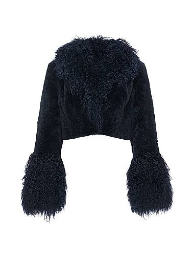 Выберите болеро из стриженого кашемирового меха с воротником и манжетами из монгольского козьего меха.