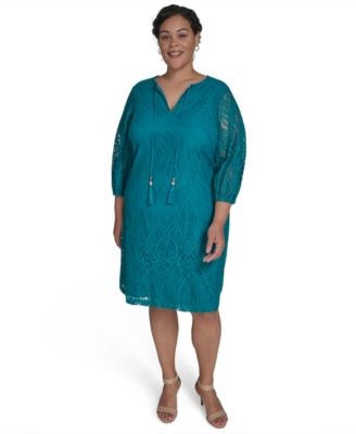 Большое платье-рубашка Jessica Howard с V-образным вырезом из кружева и рукавами 3/4
