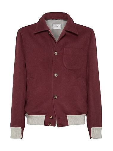 Бомбер из фланели Brunello Cucinelli с заклепками и подкладкой из купро, 100% шерсть, Италия
