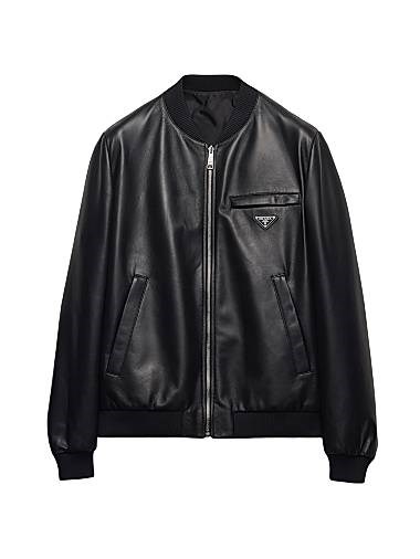 Бомбер из натуральной овечьей кожи Prada с рибанным воротником и карманами на молнии