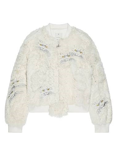 Бомбер из овечьего меха Givenchy с вышитой отделкой в виде котов, классический крой, произведен в Италии