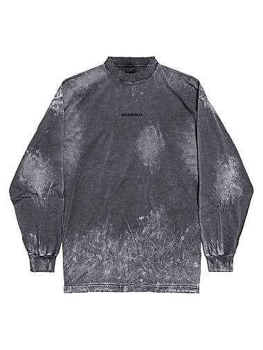 Брендовый лонгслив Balenciaga большого размера из винтажного хлопкового джерси с эффектом потертости и вышивкой логотипа