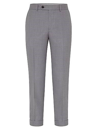Брюки формального кроя из легкого хопсака, изготовленные из шерсти и шелка.