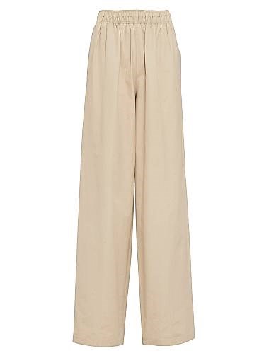 Эти брюки из поплина в непринужденном стиле имеют современный силуэт с широкими линиями. Модель с мужским кроем отличается свободными пропорциями и минималистичными деталями, такими как логотип в виде треугольника, переосмысленный с концептуальным дизайном.