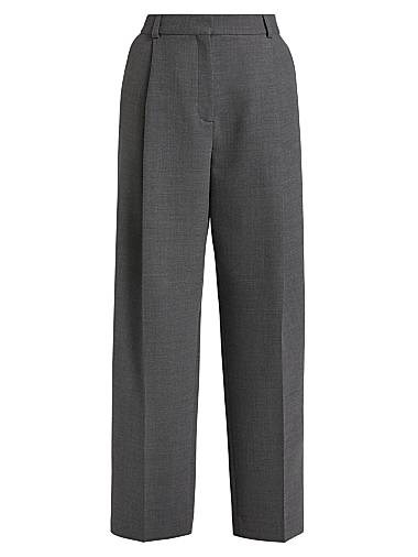 Брюки Toteme имеют низкую талию и почти прямой силуэт с глубокими складками спереди, что подчеркивает изысканность кроя. Изготовлены из мягкой смеси шерстяных волокон, модель оснащена традиционными петлями для пояса, боковыми и задними карманами для удобства.
