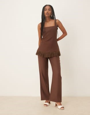 Брюки шоколадного цвета Pretty Lavish Verona с высокой талией, часть комплекта