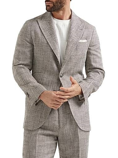 Brunello Cucinelli Блейзер из шелка, льна и хлопка с рисунком шеврон, большими лацканами и металлическими пуговицами, Италия