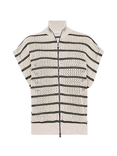 Brunello Cucinelli Кардиган из льна с сетчатым эффектом и полосками, с двумя замками, итальянского качества