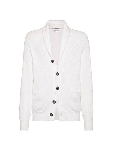 Brunello Cucinelli Хлопковый кардиган с английским рибом, металлическими пуговицами и рукавами реглан, произведен в Италии