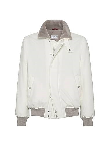 Brunello Cucinelli Легкая водоотталкивающая кашемировая авиаторская куртка с овчинной подкладкой, 100% кашемир, Франция